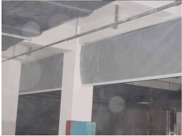 擋煙垂壁外觀:擋煙垂壁的標牌應(yīng)牢固,標識應(yīng)清楚;擋煙垂壁金屬零部件表面不允許有裂紋、壓坑及明顯的凹凸、錘痕、毛刺、孔洞等缺陷,其表面必須做防銹處理、涂層、鍍層應(yīng)均勻,不得有斑剝流淌現(xiàn)象;卷簾式擋煙垂壁的擋煙部件不允許有撕裂、缺角、挖補、破洞、傾斜、跳線、斷線、經(jīng)緯紗密度明顯不勻及色差等缺陷,其表面應(yīng)平直、整潔、美觀;各零部件的組裝、拼接處不允許有錯位。